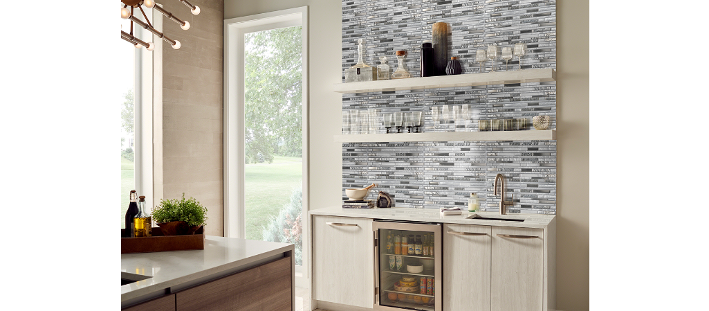 Adara Interlocking wall tile features a striking combination of silvery whites and gray tones made from light-reflecting glass tiles. These tiles are recommended to use as backsplash tile, and for accent walls as well as for countertops. Create a breath-taking shower surround, kitchen backsplash, or accent wall around a fireplace. They coordinate beautifully with a wide range of tiles and natural stone slabs in our vast inventory.